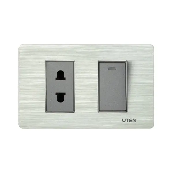 Bộ công tắc đơn 1 chiều + ổ cắm 2 chấu uten V7.0 bao gồm mặt che, hạt công tắc cỡ S và hạt ổ cắm 2 chấu dễ dàng, thoải mái khi sử dụng.